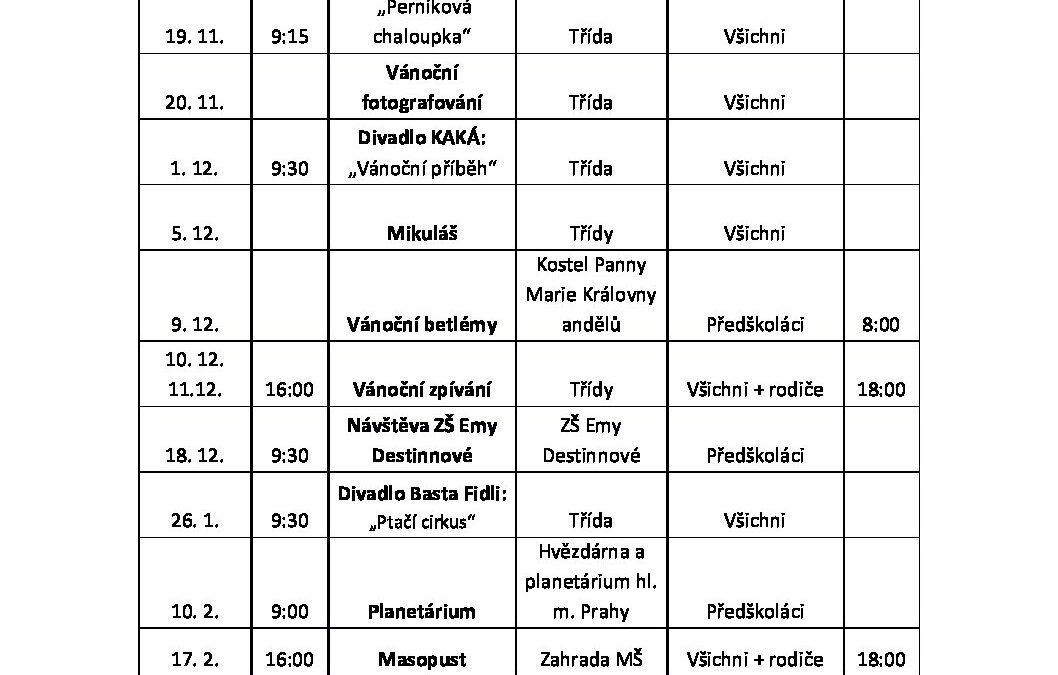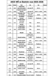 Přehled akcí MŠ