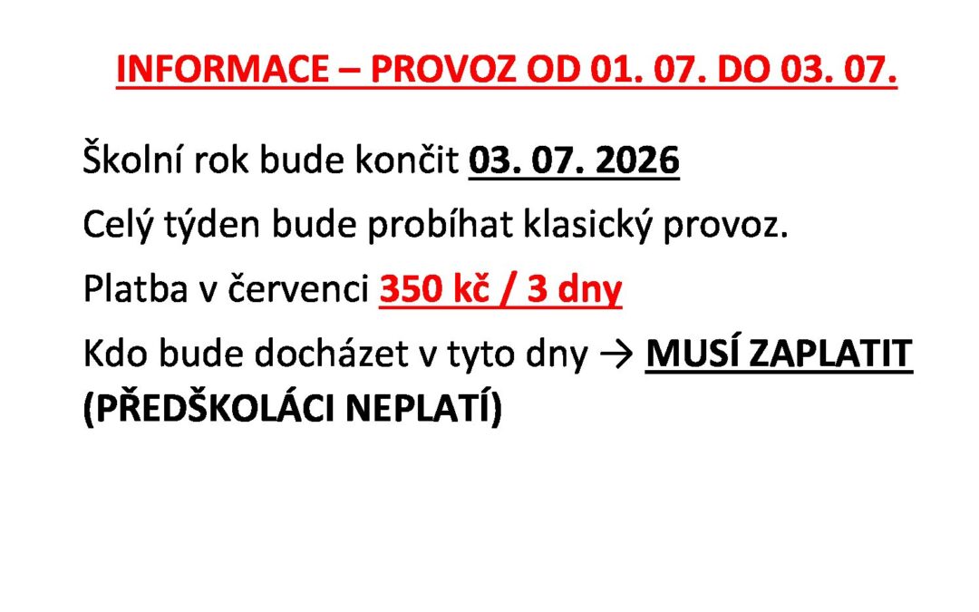 OMEZENÝ PROVOZ 23. – 27. 02. 2026