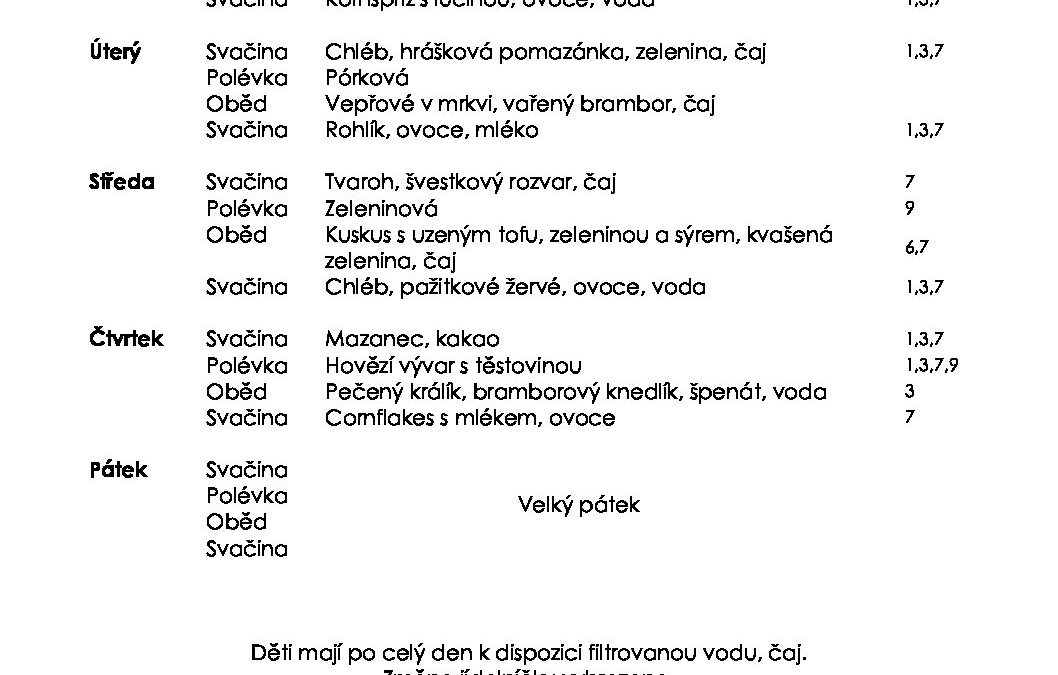 Jídelní lístek 30.3. – 3.4.2026