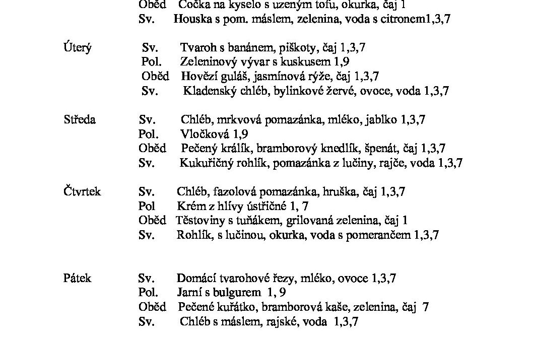 Jídelní lístek 8.9. – 12.9.2025